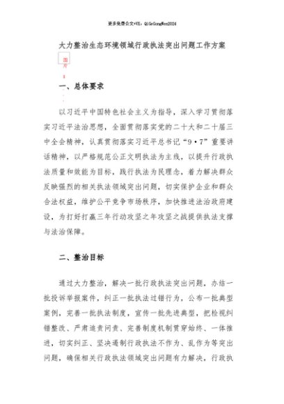 / 【七哥公文】2024年:大力整治生态环境领域行政执法突出问题工作方案+更多免费公文+VX:QiGeGongWen2024