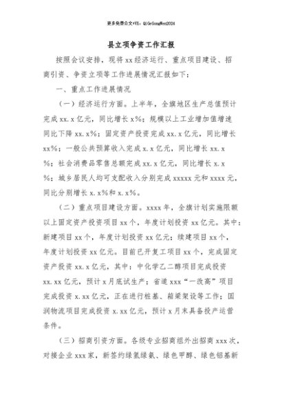 / 【七哥公文】2024年:县立项争资工作汇报+更多免费公文+VX:QiGeGongWen2024