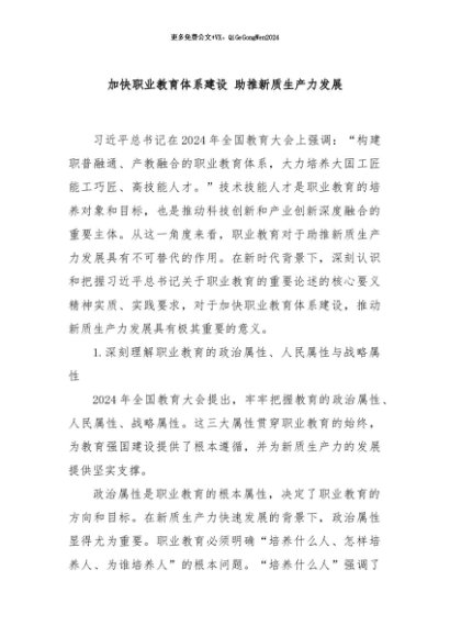 / 【七哥公文】2024年:加快职业教育体系建设 助推新质生产力发展+更多免费公文+VX:QiGeGongWen2024