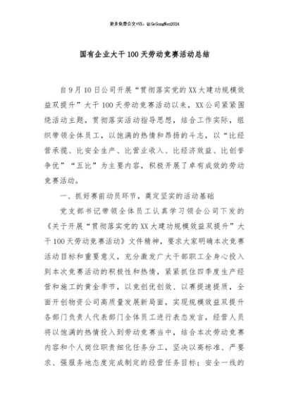 / 【七哥公文】2024年:国有企业大干100天劳动竞赛活动总结+更多免费公文+VX:QiGeGongWen2024