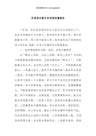 / 【七哥公文】2024年:区政府办副主任述职述廉报告+更多免费公文+VX:QiGeGongWen2024