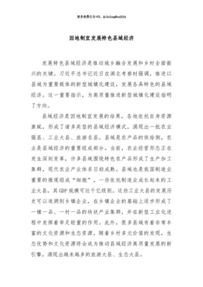 【七哥公文】2024年:因地制宜发展特色县域经济+更多免费公文+VX:QiGeGongWen2024