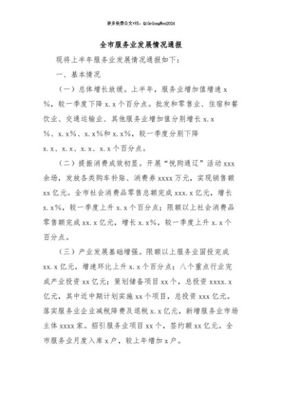 / 【七哥公文】2024年:全市服务业发展情况通报+更多免费公文+VX:QiGeGongWen2024