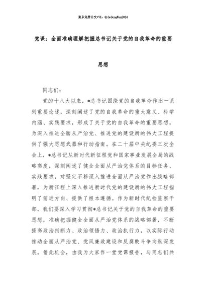 【七哥公文】2024年:党课:全面准确理解把握总书记关于党的自我革命的重要思想+更多免费公文+VX:QiGeGongWen2024