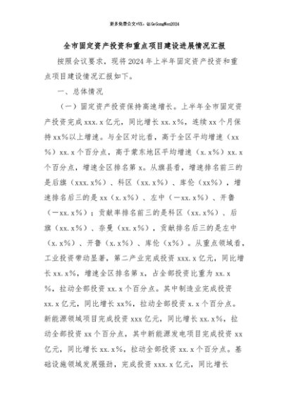 / 【七哥公文】2024年:全市固定资产投资和重点项目建设进展情况汇报+更多免费公文+VX:QiGeGongWen2024
