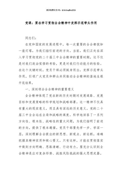 / 【七哥公文】2024年:党课:要在学习贯彻全会精神中发挥示范带头作用+更多免费公文+VX:QiGeGongWen2024