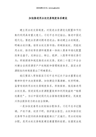 / 【七哥公文】2024年:加快推进用水权交易制度体系建设+更多免费公文+VX:QiGeGongWen2024