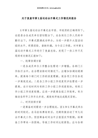 / 【七哥公文】2024年:关于复盘市第X届运动会开幕式工作情况的报告+更多免费公文+VX:QiGeGongWen2024