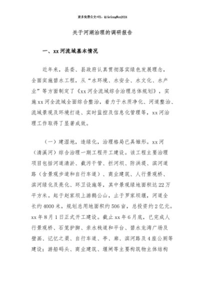 / 【七哥公文】2024年:关于河湖治理的调研报告+更多免费公文+VX:QiGeGongWen2024