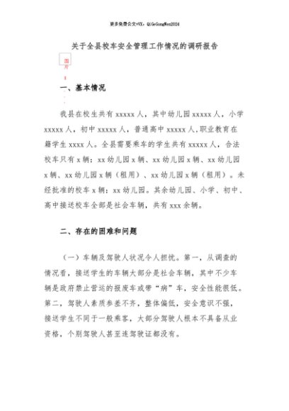 / 【七哥公文】2024年:关于全县校车安全管理工作情况的调研报告+更多免费公文+VX:QiGeGongWen2024