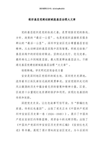 / 【七哥公文】2024年:做好基层党建创新赋能基层治理大文章+更多免费公文+VX:QiGeGongWen2024