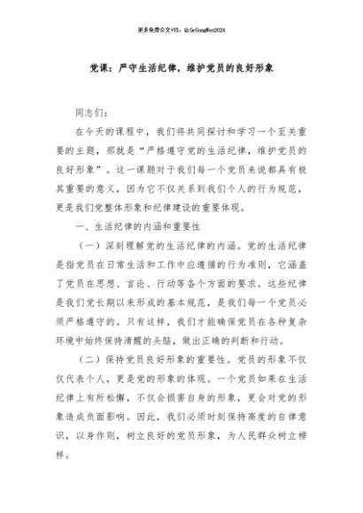 / 【七哥公文】2024年:党课:严守生活纪律,维护党员的良好形象+更多免费公文+VX:QiGeGongWen2024