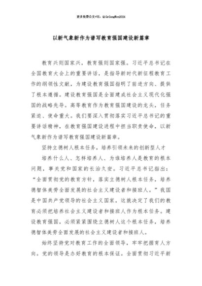 / 【七哥公文】2024年:以新气象新作为谱写教育强国建设新篇章+更多免费公文+VX:QiGeGongWen2024