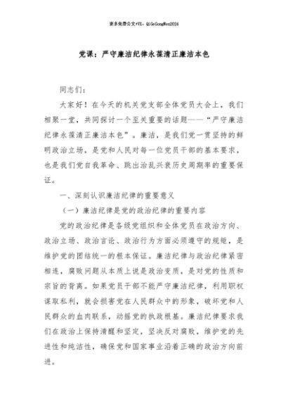 / 【七哥公文】2024年:党课:严守廉洁纪律永葆清正廉洁本色+更多免费公文+VX:QiGeGongWen2024