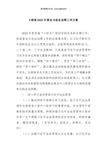 / 【七哥公文】2024年:X街道2025年普法与依法治理工作方案+更多免费公文+VX:QiGeGongWen2024