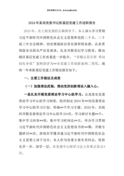 / 【七哥公文】2024年:2024年某局党委书记抓基层党建工作述职报告+更多免费公文+VX:QiGeGongWen2024