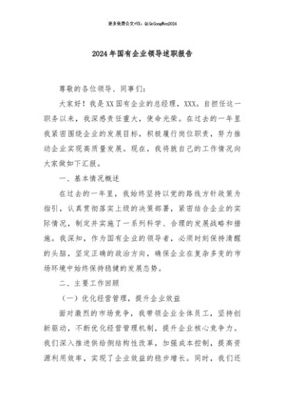 / 【七哥公文】2024年:2024年国有企业领导述职报告+更多免费公文+VX:QiGeGongWen2024