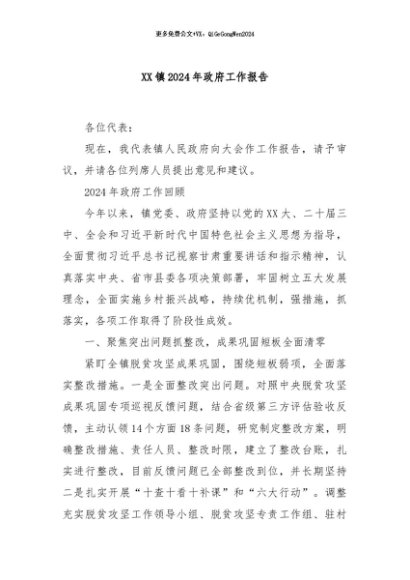 / 【七哥公文】2024年:XX镇2024年政府工作报告+更多免费公文+VX:QiGeGongWen2024