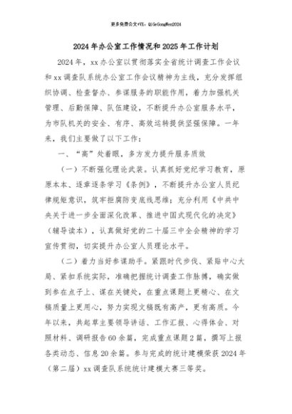 / 【七哥公文】2024年:2024年办公室工作情况和2025年工作计划+更多免费公文+VX:QiGeGongWen2024
