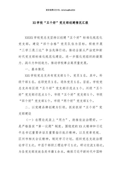/ 【七哥公文】2024年:XX学校“五个好”党支部创建情况汇报+更多免费公文+VX:QiGeGongWen2024