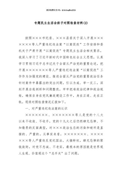 / 【七哥公文】2024年:专题民主生活会班子对照检查材料(2)+更多免费公文+VX:QiGeGongWen2024