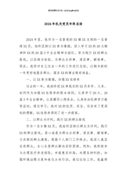 / 【七哥公文】2024年:2024年机关党员年终总结+更多免费公文+VX:QiGeGongWen2024