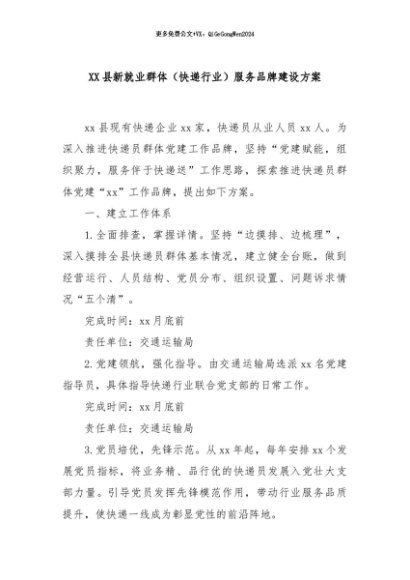 / 【七哥公文】2024年:XX县新就业群体(快递行业)服务品牌建设方案+更多免费公文+VX:QiGeGongWen2024