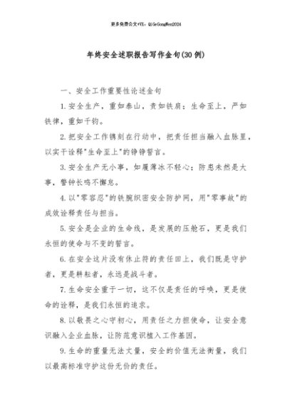 / 【七哥公文】2024年:(30例)年终安全述职报告写作金句+更多免费公文+VX:QiGeGongWen2024