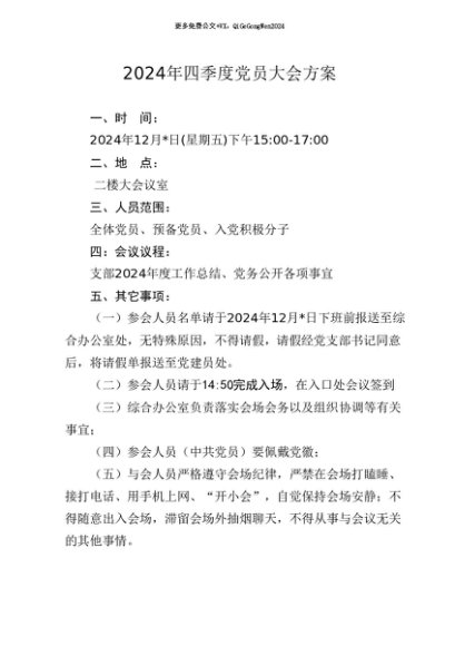 / 【七哥公文】2024年:03-2024年四季度党员大会方案(12月版)+更多免费公文+VX:QiGeGongWen2024