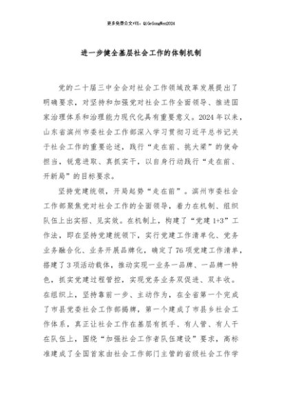 【七哥公文】2024年:进一步健全基层社会工作的体制机制+更多免费公文+VX:QiGeGongWen2024