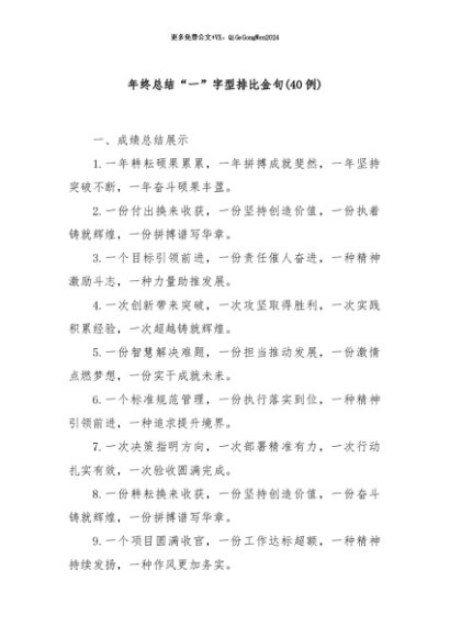 / 【七哥公文】2024年:(40例)年终总结“一”字型排比金句+更多免费公文+VX:QiGeGongWen2024