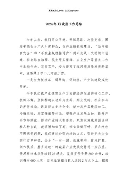 / 【七哥公文】2024年:2024年XX政府工作总结+更多免费公文+VX:QiGeGongWen2024