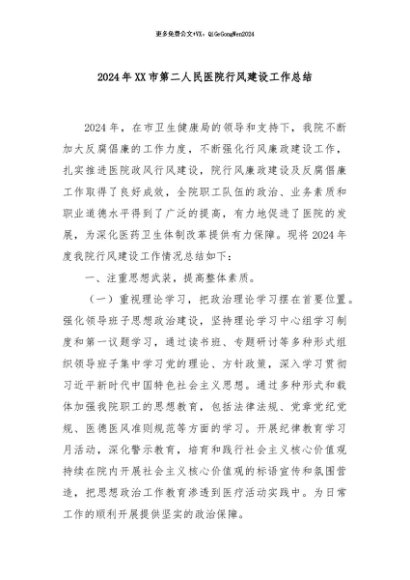 / 【七哥公文】2024年:2024年XX市第二人民医院行风建设工作总结+更多免费公文+VX:QiGeGongWen2024