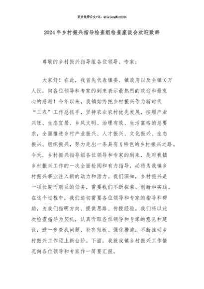 / 【七哥公文】2024年:2024年乡村振兴指导检查组检查座谈会欢迎致辞+更多免费公文+VX:QiGeGongWen2024