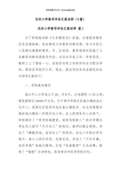 / 【七哥公文】2024年:(3篇)农村小学督导评估汇报材料+更多免费公文+VX:QiGeGongWen2024