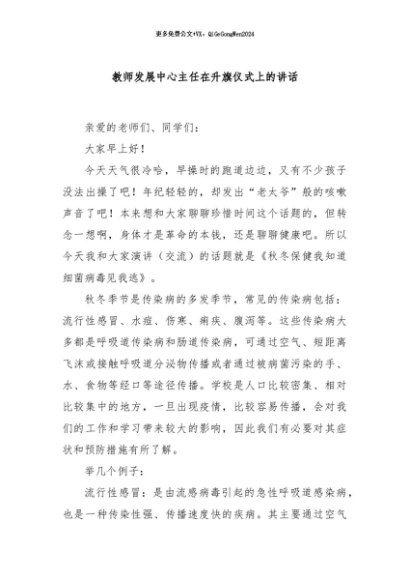/ 【七哥公文】2024年:教师发展中心主任在升旗仪式上的讲话+更多免费公文+VX:QiGeGongWen2024