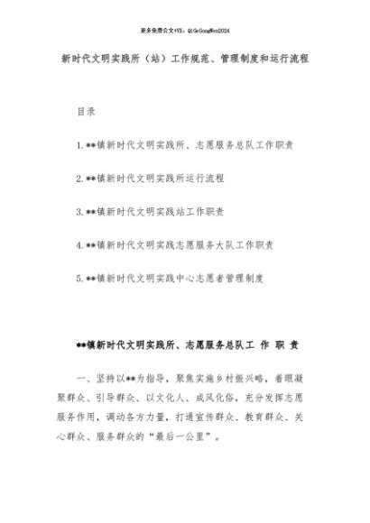 【七哥公文】2024年:新时代文明实践所(站)工作规范、管理制度和运行流程+更多免费公文+VX:QiGeGongWen2024