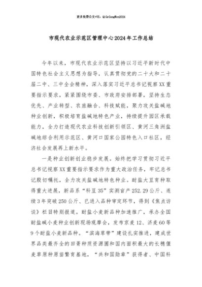 / 【七哥公文】2024年:市现代农业示范区管理中心2024年工作总结+更多免费公文+VX:QiGeGongWen2024