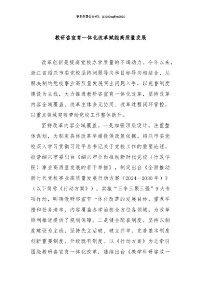 / 【七哥公文】2024年:教研咨宣育一体化改革赋能高质量发展+更多免费公文+VX:QiGeGongWen2024