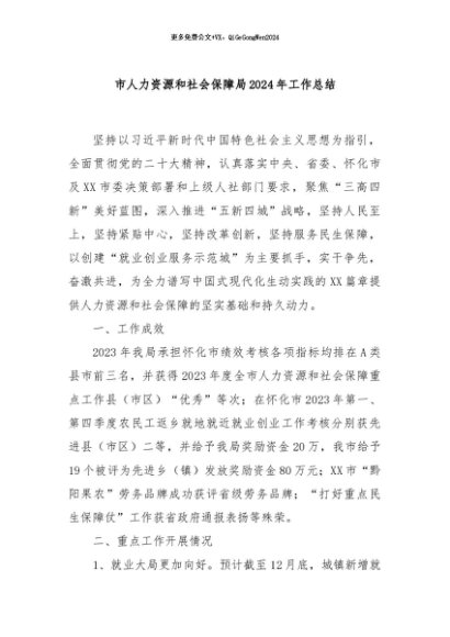/ 【七哥公文】2024年:市人力资源和社会保障局2024年工作总结+更多免费公文+VX:QiGeGongWen2024