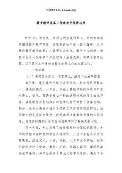 / 【七哥公文】2024年:教育教学改革工作成效及经验总结+更多免费公文+VX:QiGeGongWen2024