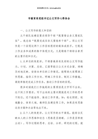 【七哥公文】2024年:市教育局党组书记公文写作心得体会+更多免费公文+VX:QiGeGongWen2024