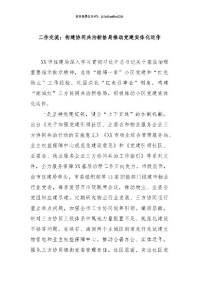 / 【七哥公文】2024年:工作交流:构建协同共治新格局推动党建实体化运作+更多免费公文+VX:QiGeGongWen2024