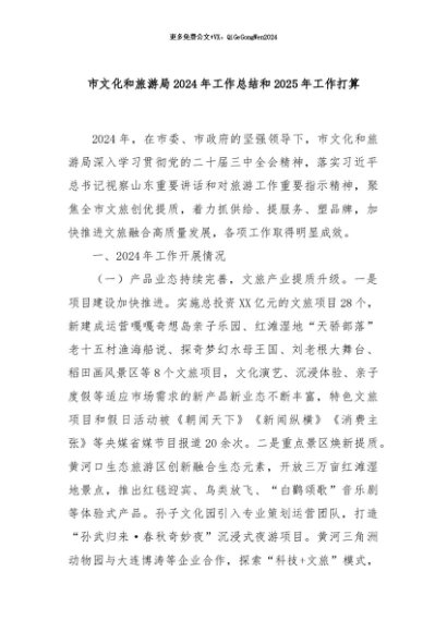 【七哥公文】2024年:市文化和旅游局2024年工作总结和2025年工作打算+更多免费公文+VX:QiGeGongWen2024