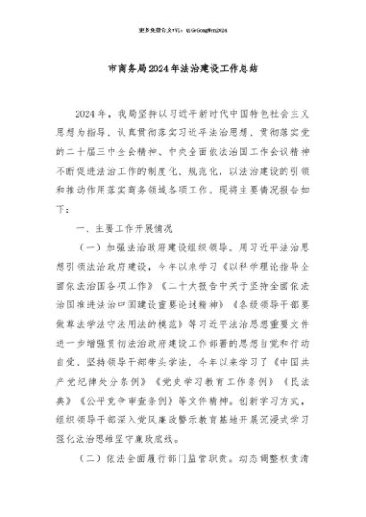 / 【七哥公文】2024年:市商务局2024年法治建设工作总结+更多免费公文+VX:QiGeGongWen2024