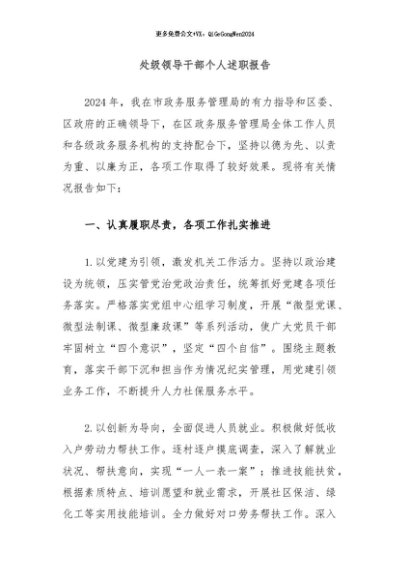 / 【七哥公文】2024年:处级领导干部个人述职报告+更多免费公文+VX:QiGeGongWen2024