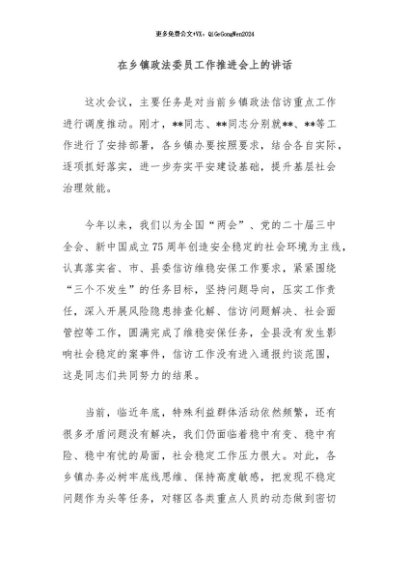 / 【七哥公文】2024年:在乡镇政法委员工作推进会上的讲话+更多免费公文+VX:QiGeGongWen2024