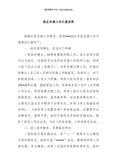/ 【七哥公文】2024年:国企双拥工作汇报材料+更多免费公文+VX:QiGeGongWen2024