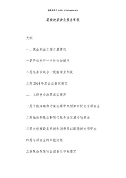 / 【七哥公文】2024年:县发改委涉企服务汇报+更多免费公文+VX:QiGeGongWen2024