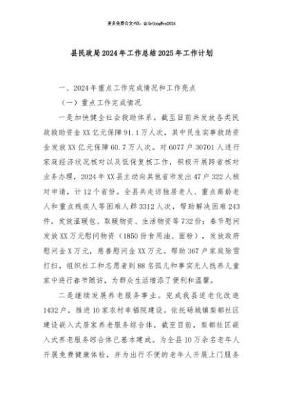 / 【七哥公文】2024年:县民政局2024年工作总结2025年工作计划+更多免费公文+VX:QiGeGongWen2024